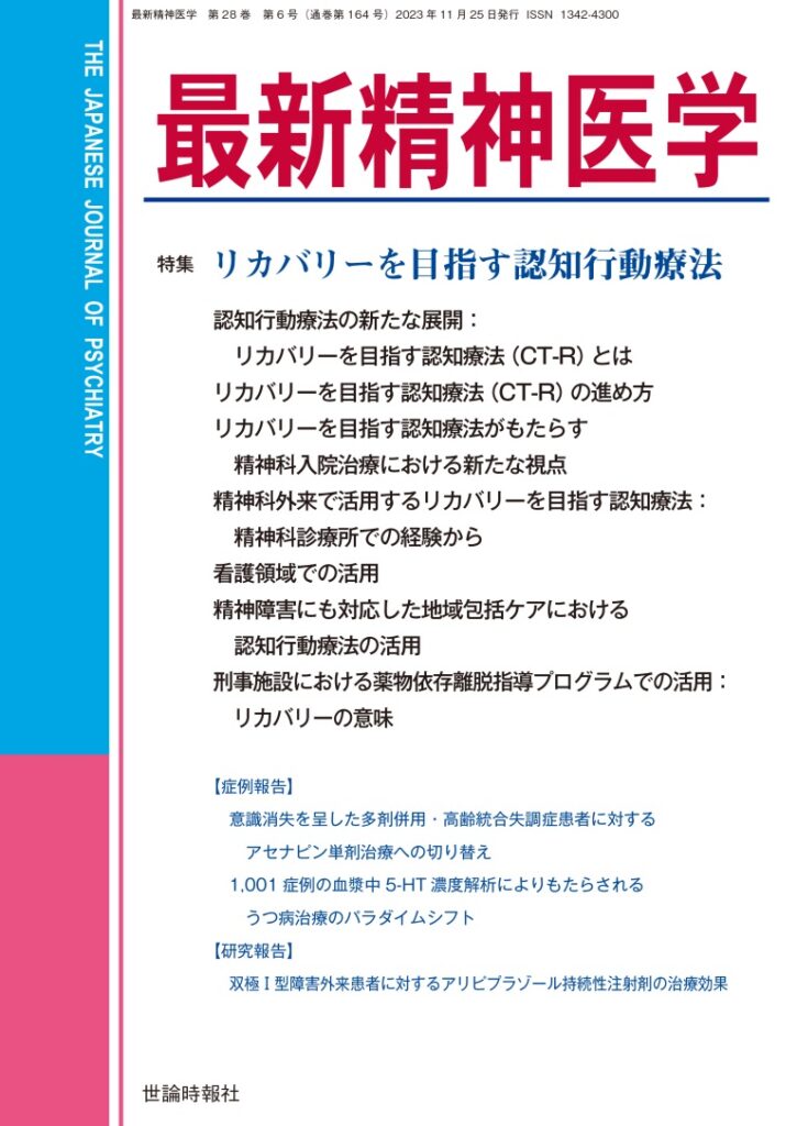 ◆リカバリーを目指す認知療法がもたらす精神科入院治療における新たな視点 耕野敏樹